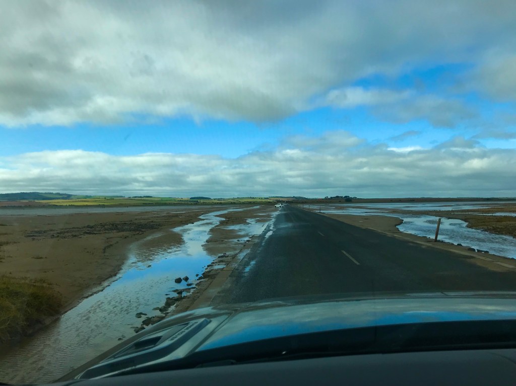 Living close to Mersea Island we are used to checking tide tables before driving across the causeway, but the Holy Island of Lindisfarne took this to a whole other level. Its causeway is far longer than Mersea’s and much flatter to the water. It’s important to check the published safe crossing times as cars do get stranded on a regular basis. There’s a refuge for those stranded to wait for rescue but we were warned cars are abandoned to the tide.