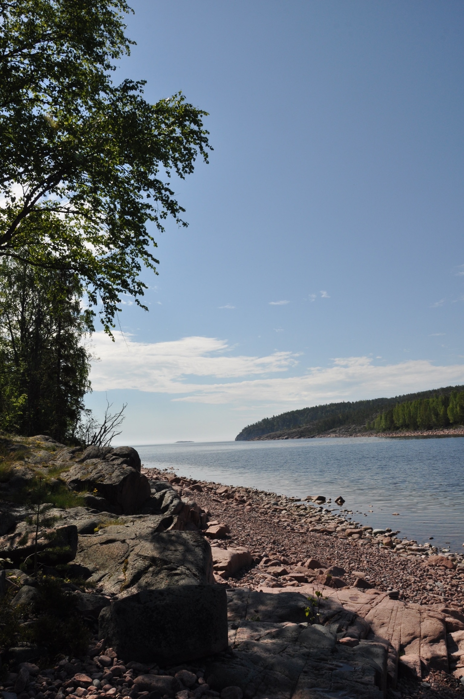I’m spoilt for choice when it comes to picnic locations. The reflections of Mjallom’s waterside dwellings and the trees that form a picture perfect backdrop are still, not a murmur of a breeze to shimmy the water’s smooth surface. Under a blue sky at Norrfallsviken beach, I clamber over the pink granite cobbles and boulders with not a soul in sight. A lone tree on the headland marks the end of the promontory and something to aim for.